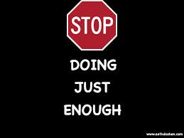 Good morning, I woke up with the message: Stop Doing Just Enough. How many times in your life can you say you were doing just enough to get by??? I have to be honest for the last 8 years in my business that has been me. I was not concerned with what the future holds, because I thought everything was okay. NOW I KNOW that doing just enough will cause your entire LIFE to crumble. I am telling you and myself. STOP DOING JUST ENOUGH!!!! Today is the day to affirm that I will do more than I ever imagined to change my life. Commit to yourself that you are worth everything that life has to offer. I am sure if you commit, you will go into action and change your life. I have made some incredible goals for 2015. It requires me going into great action to make that happen. Today is the day: STOP DOING JUST ENOUGH!!!!